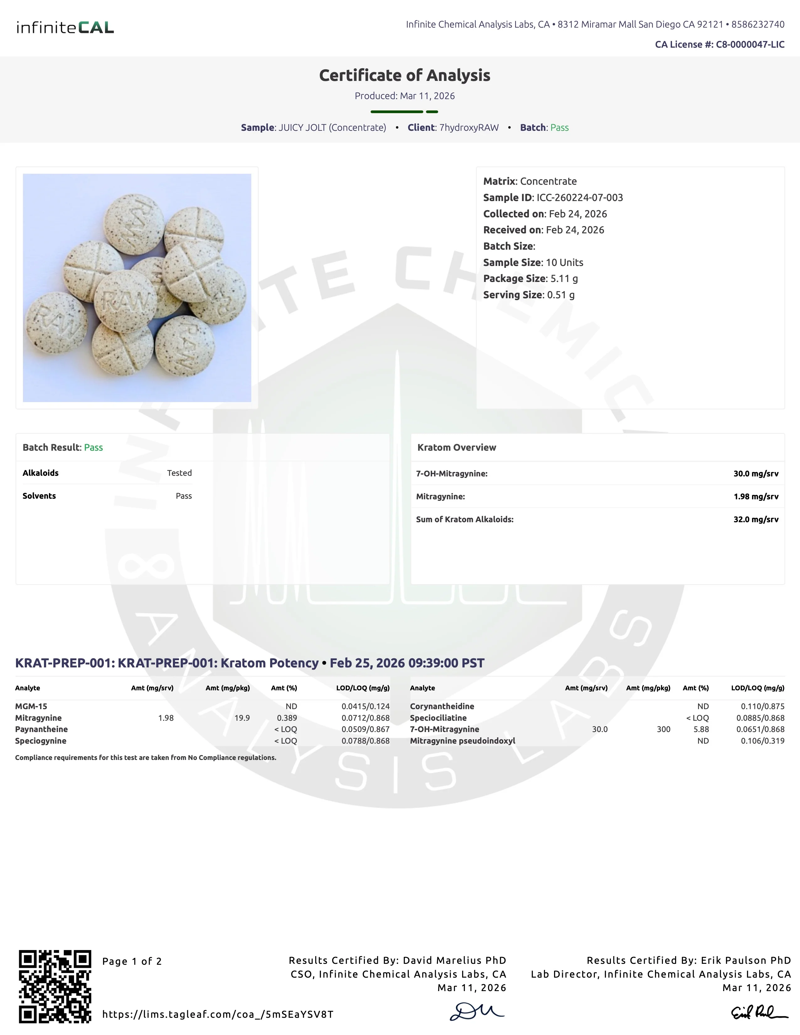 JUICY JOLT ⚡️30MG (LABELED) - TOTAL ALKS 32MG (30MG 7-OH) - NEW BATCH 03.19.26