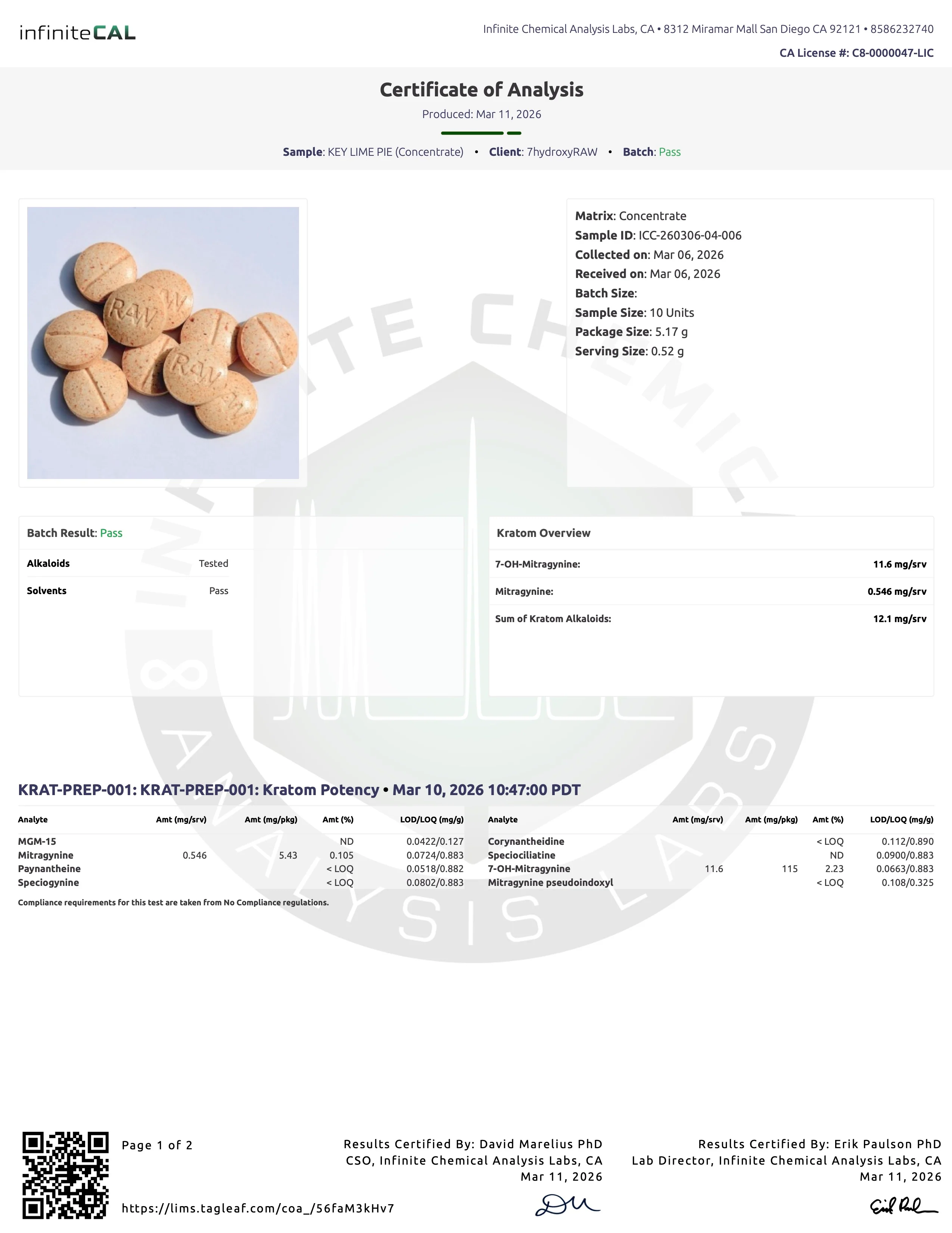 KEY LIME PIE 🍋🟩 12MG (LABELED) - TOTAL ALKS 12.1MG (11.6MG 7-OH) - NEW BATCH 03.18.26
