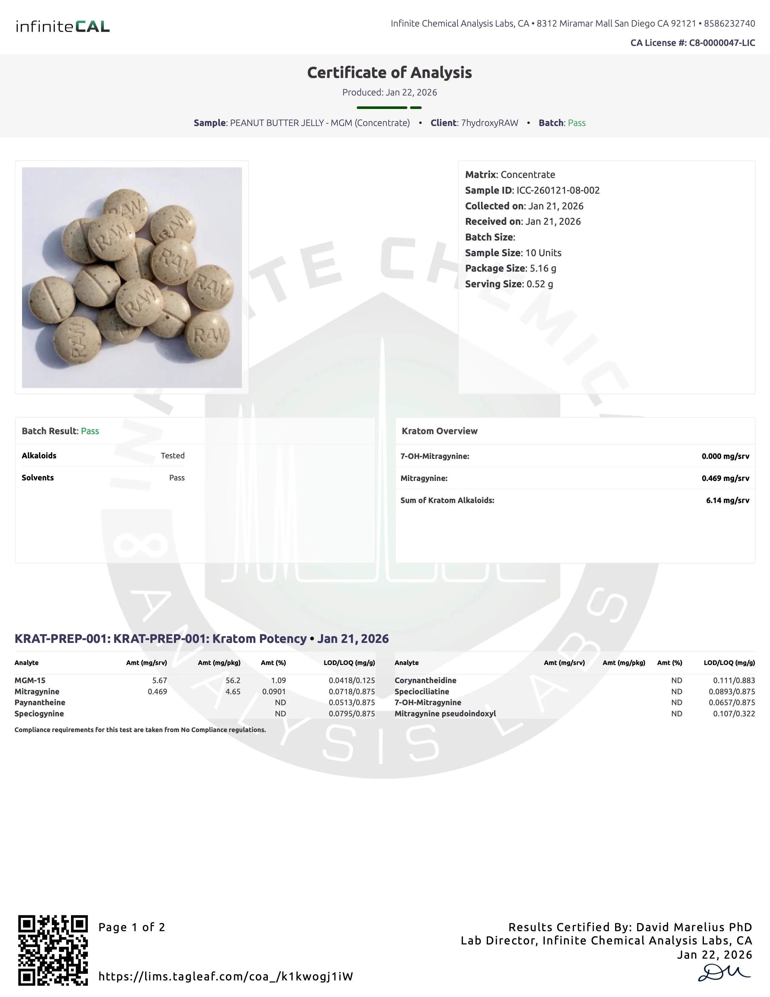 LABS FOR POTENCY 1 (5.76MG) AND 2 (7MG) AND SOLVENTS - 01.22.26