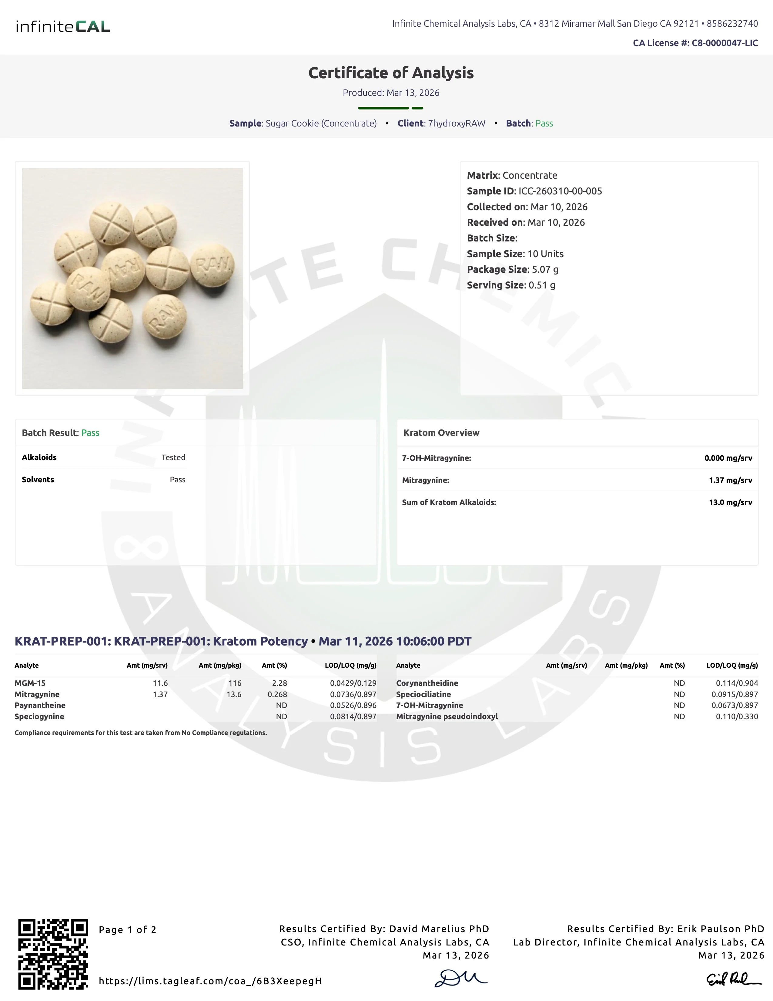 LABS FOR POTENCY 1 (13MG) AND 2 (15MG) AND 3 (16.04MG) AND SOLVENTS - 03.13.26